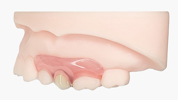 インプラントにしたいけれど手術が怖い方への当面の入れ歯としてもとても人気です。無味・無臭で安定して食べ物を食べることができ、しゃべるときも自然な発音になります。