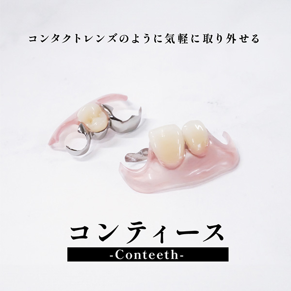 コンティースはブリッジの安定感と義歯の手軽さを兼ね備えた今までにない新しい義歯です。