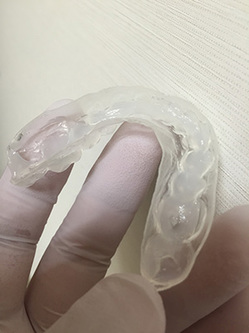 歯の清掃を行いその後ドラッグリテーナーに虫歯予防の薬剤(チェックアップルートケア)をいれてお口に装着することで、お口全体のバイオフィルムの除去のを行う予防法。リスクが高いお子さんや、唾液検査で2項目以上リスク要素があった方におすすめです。